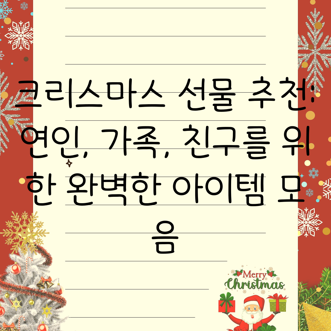 크리스마스 다가오면 선물을 고르는 일은 즐거운 동시에 고민스러운 일입니다. 연인에게는 사랑을, 가족에게는 감사의 마음을, 친구에게는 즐거움을 전달할 수 있는 선물을 고르기 위해선 상황에 맞는 추천 아이템이 필요합니다. 그래서 상황별 크리스마스 선물 추천과 함께, 구매 가능한 링크를 통해 간편하고 저렴한 가격으로 쇼핑할 수 있는 팁까지 알려드리겠습니다.