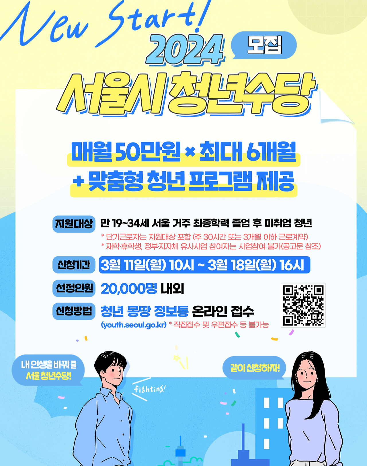 월 50만 원씩 최대 6개월 지급하는 '청년수당이 3월 11일부터 참여자를 모집합니다. 올해는 청년 스스로 성장할 수 있는 정책으로 업스레이드 되는데요, 청년수당으로 취업과 자립에 성공한 청년 멘토로 위촉하고, 교욱·상담 등 성공적인 취업을 위해 자립지원 유형별 맞춤형 지원을 한다고 합니다.